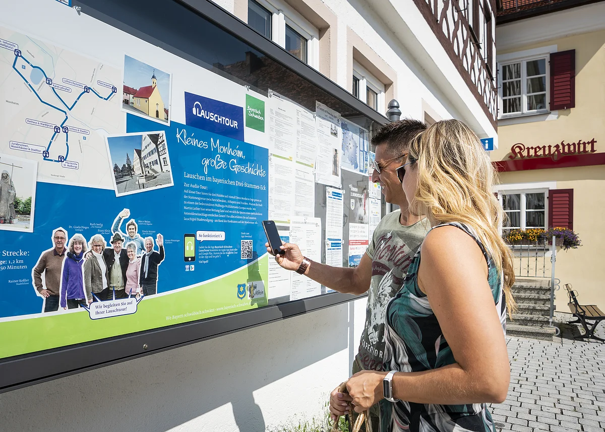 Außerdem befinden sich im Vorraum zwei große Prospektständer mit Infomaterial zu den Themen Radfahren, Wandern und Freizeit in den Urlaubsregionen Monheimer Alb, Ferienland DONAURIES, Geopark Ries und Naturpark Altmühltal.